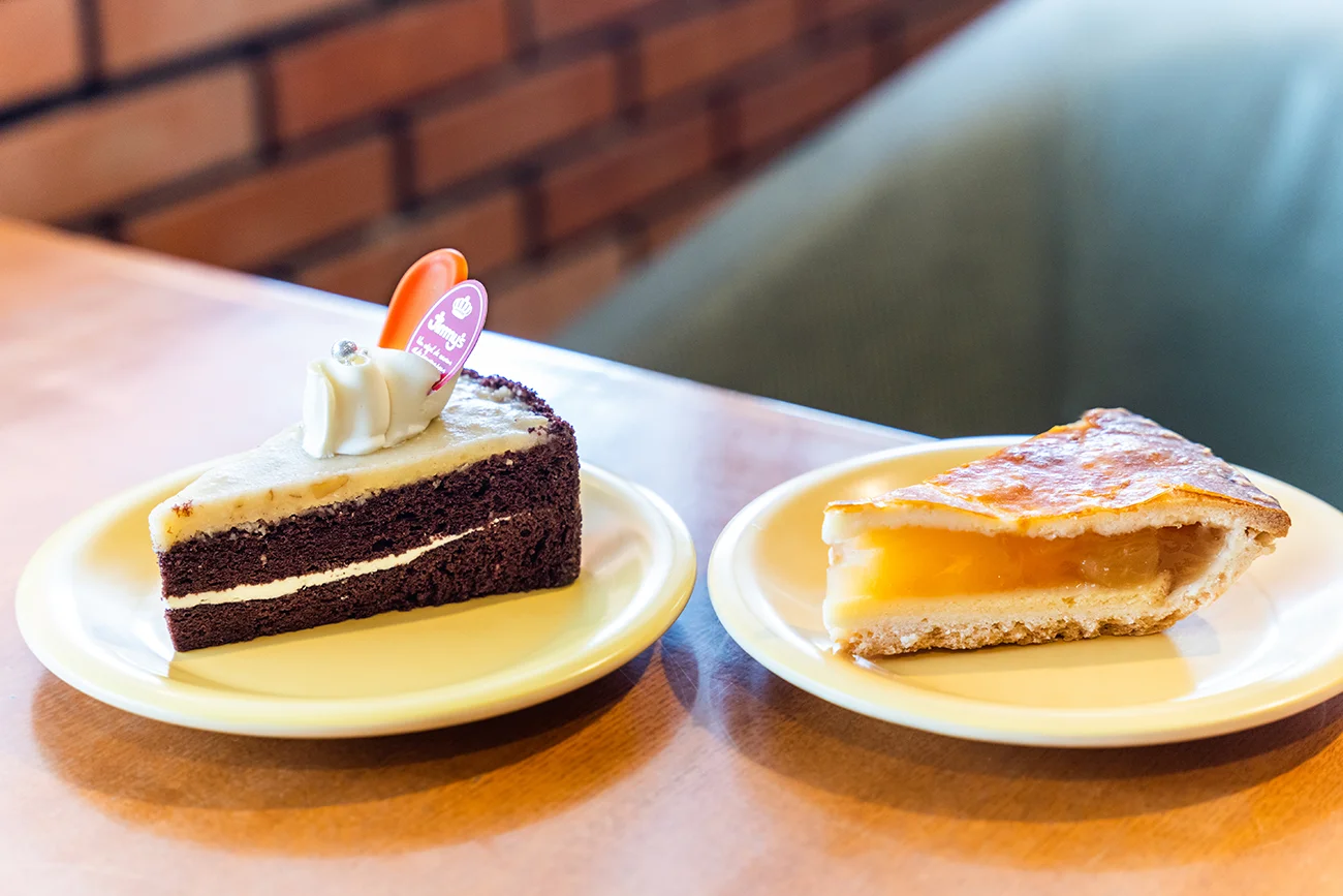 当初製造方法を教えたのは、故郷でパン職人やケーキ職人だった米軍人たち。メニューやレシピも彼らの故郷の味だ。<ジミー>の代名詞であるアップルパイやジャーマンケーキもこうして誕生した。ジャーマンケーキとは、ココナッツフィリングを上に塗ったチョコスポンジケーキ。その名前は、19世紀にアメリカ人のサミュエル・ジャーマンが開発したケーキ用チョコレートに由来する。1957年、このチョコレートを使って一人の主婦が考案したケーキのレシピがアメリカで人気に。これがジャーマンケーキと呼ばれ、米軍経由で沖縄に伝わった。