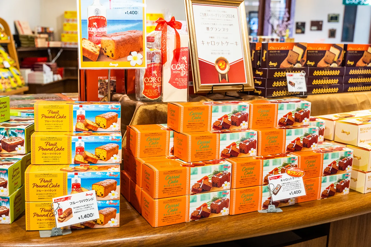 一方、見た目は同じでも中身は時代に合わせて変わっている。アップルパイの原料のリンゴも小麦粉も今は国内産。また紅芋やニンジン、イチゴ、ラム酒など、地産地消の考えから沖縄県産の素材を使うことにも積極的だ。ガーリックチキンの鶏肉もやんばる産に変えた。「それだけ沖縄の素材が技術的にも向上し、品質が良くなってきたということです」(稲嶺社長)。